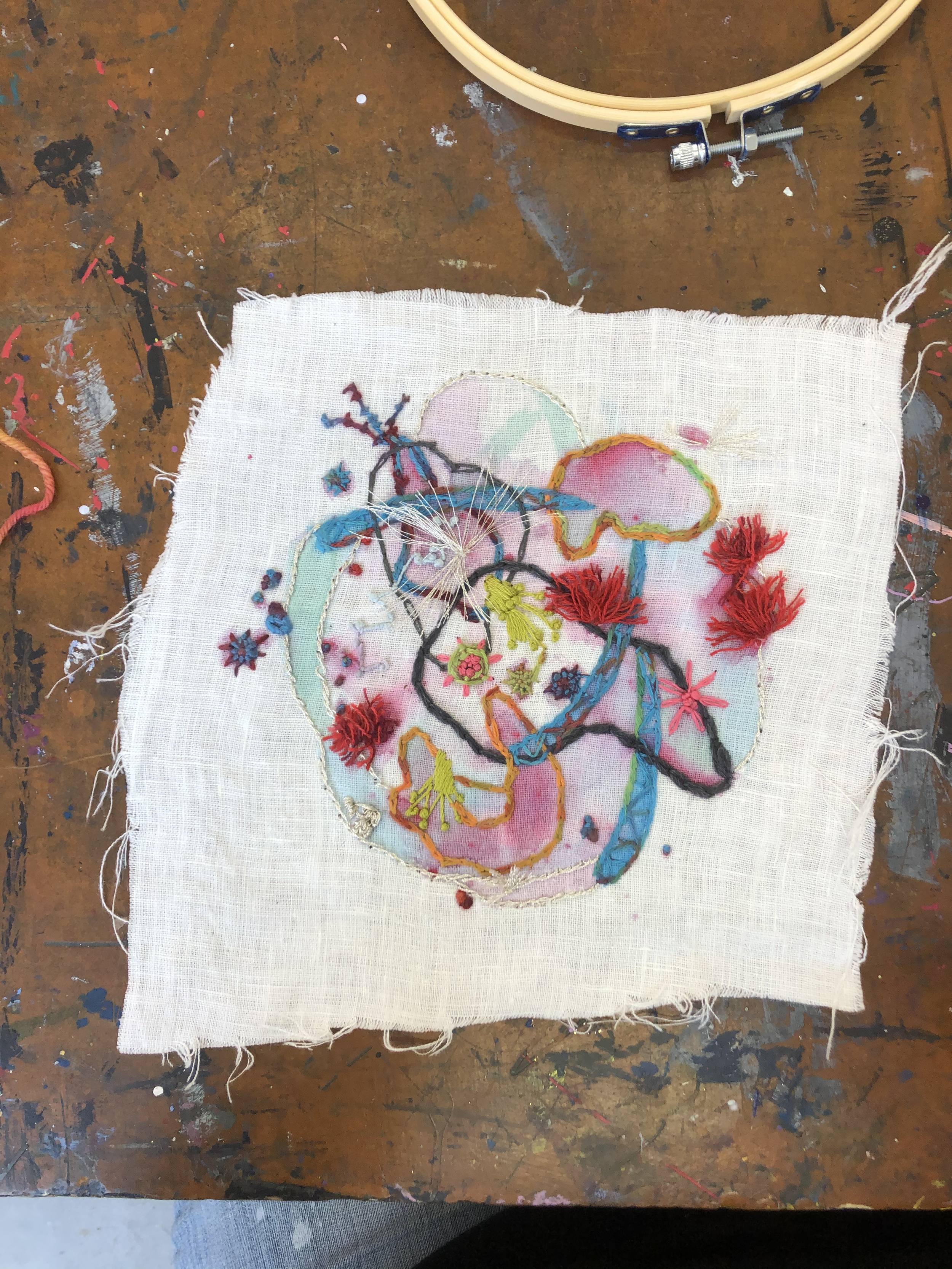 A great way to cultivate joy and community. Create and embellish painted surfaces using textiles. We’ll start by exploring with no pressure; intuitively painting on fabric free & loose! We’ll cover a collection of embroidery stitches you can use to enhance your paintings. We certainly hope you’ll enjoy yourself during this playful class!